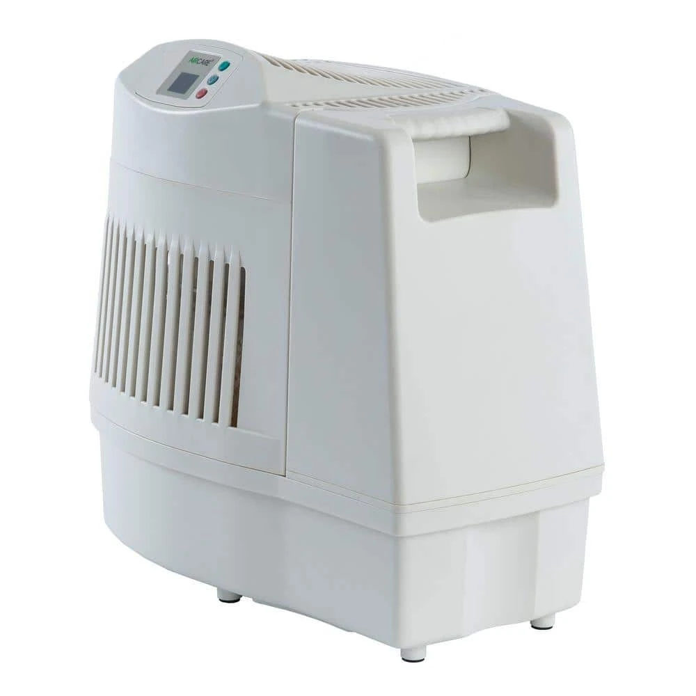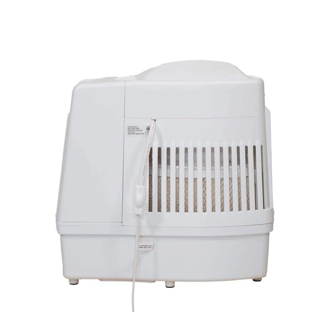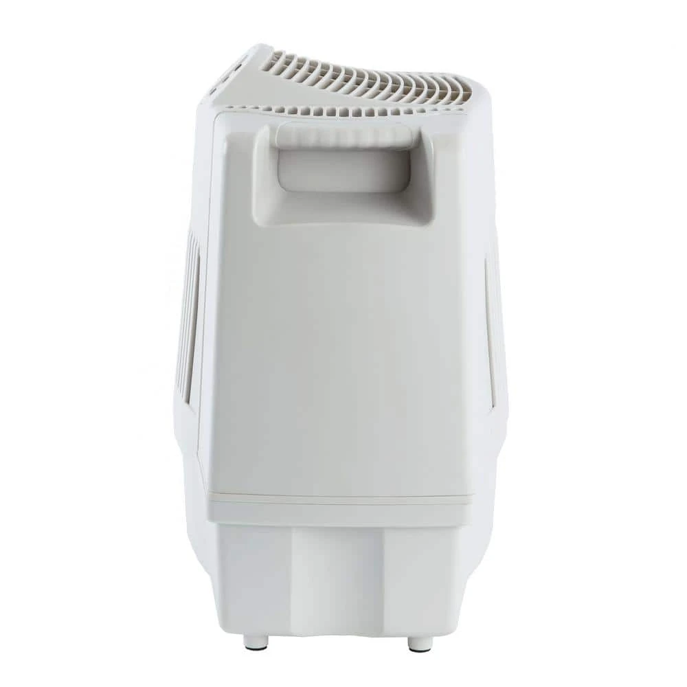 This best-selling model’s removable tank has a unique spring valve so there is no need for a cap – just press and fill. It has three fan speeds, plus an an auto setting that allows the fan to self-adjust according to the selected humidity level. The Mini-Console includes an adjustable humidistat, auto shutoff, refill indicator, and check filter indicator.