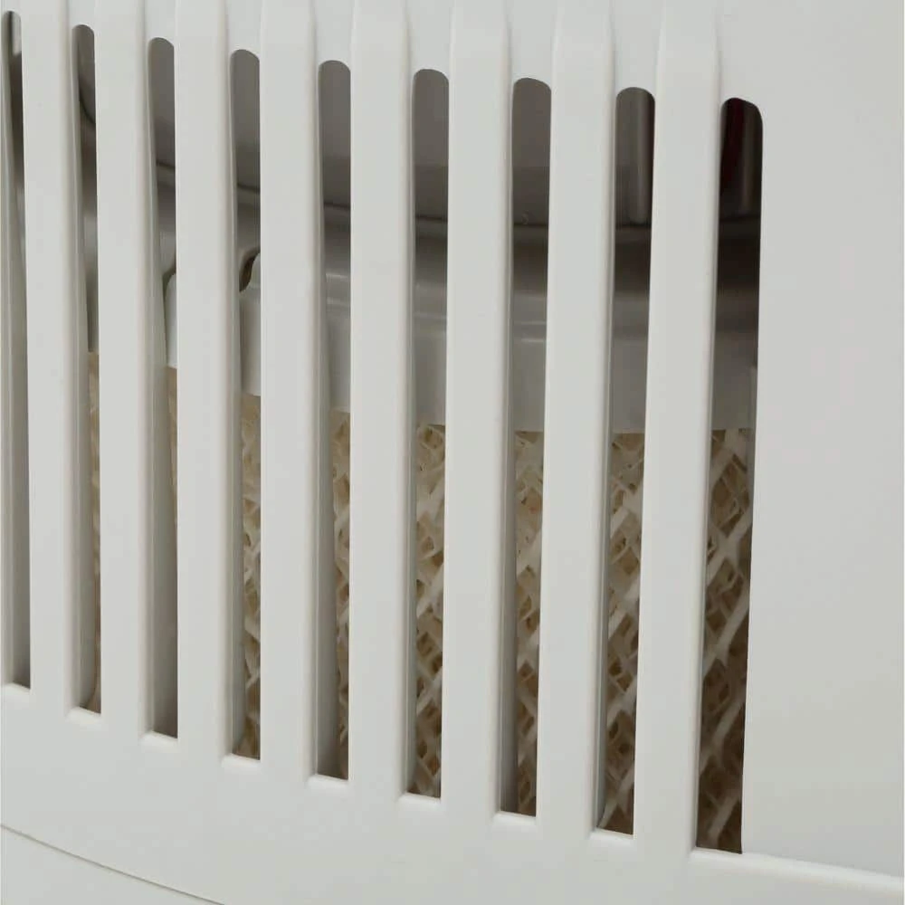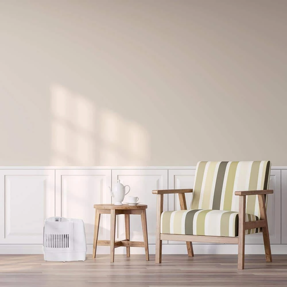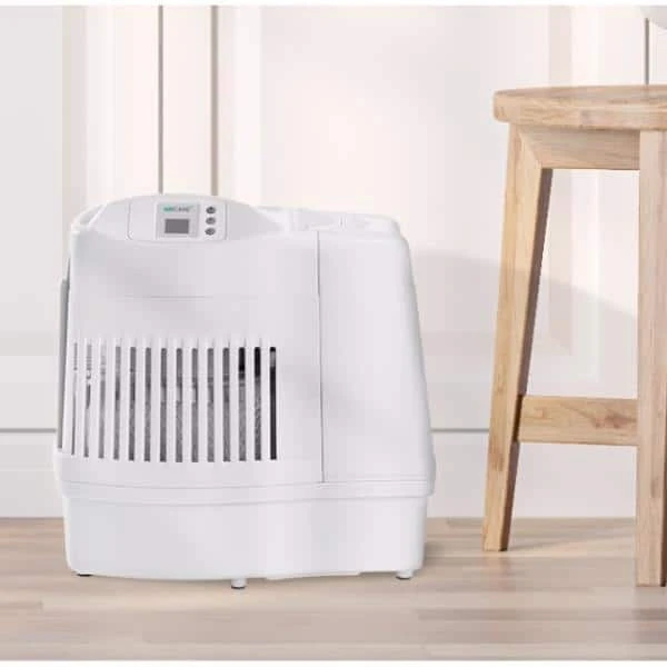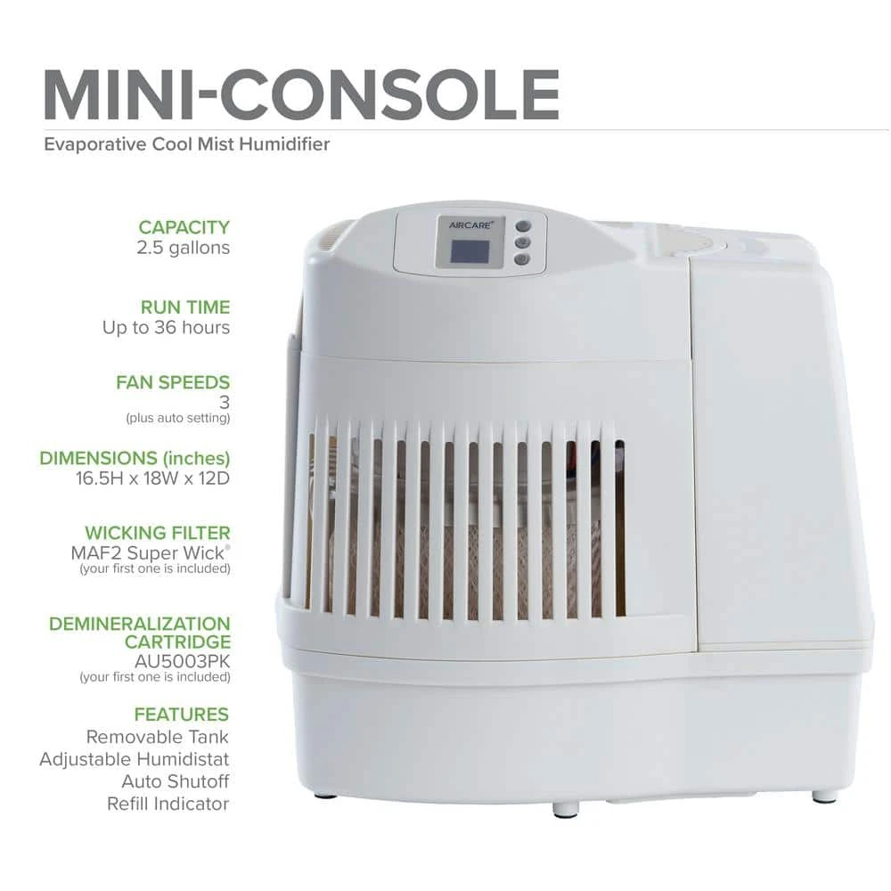 This best-selling model’s removable tank has a unique spring valve so there is no need for a cap – just press and fill. It has three fan speeds, plus an an auto setting that allows the fan to self-adjust according to the selected humidity level. The Mini-Console includes an adjustable humidistat, auto shutoff, refill indicator, and check filter indicator.