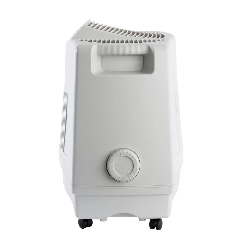 The powerful Console can humidify a home up to 3,600 square feet. Its single tank is easy to refill in a sink, and digital controls make settings simple. The Console has an auto setting that allows the fan to self-adjust according to the selected humidity level. A demineralization cartridge has been added to the MA1201 to help extend the wick’s life.