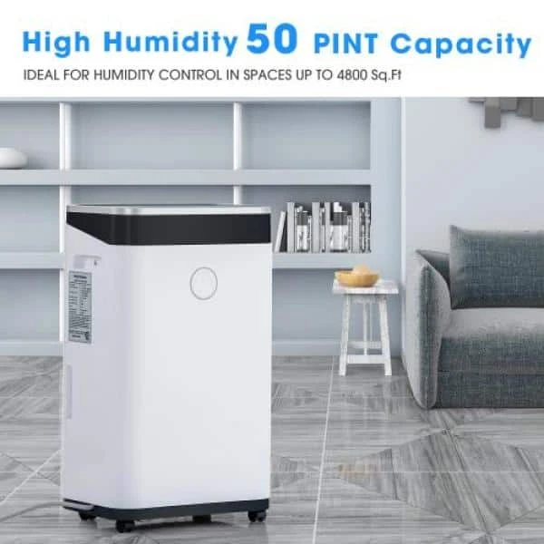 - Powerful moisture removal: our dehumidifier removes up to 50 pt. of moisture 1-day, ideal for large rooms in area up to 4800 sq. ft., you can feel fresh air even in humid weather