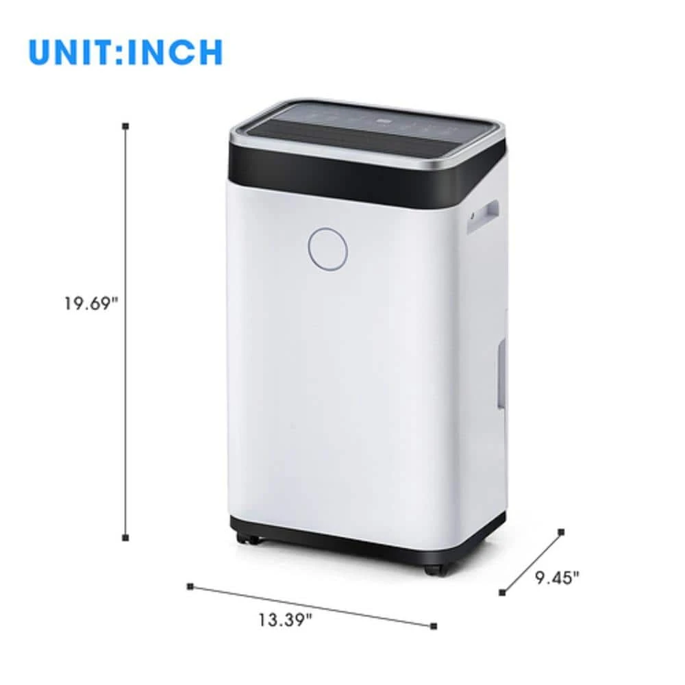 The 50 pts. dehumidifier is equipped with a powerful compressor can quickly and quietly remove to 50 pts. (under 86°F, 80% RH condition) of moisture from the air per day. Making it fit for medium to large rooms in areas up to 4800 sq. ft. Designed with an adjustable humidity range between 30% – 80% and intelligent humidity control system, you can adjust to ideal indoor humidity for maximum comfort easily. It is perfect for any crawlspace, basement, office, living room, cellar, laundry room and stockroom, etc.