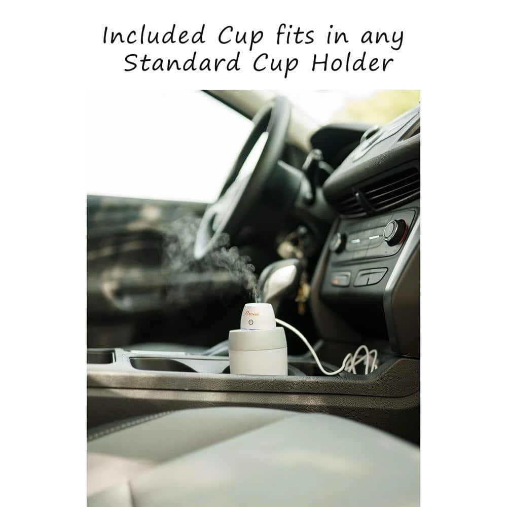 - INCLUDED 8 OZ TRAVEL CUP: The Crane travel humidifier includes an 8 oz travel cup designed to fit car cupholders perfectly. The travel cool mist humidifier is easy to carry and travel with because of its ultra-compact size and included travel bag.