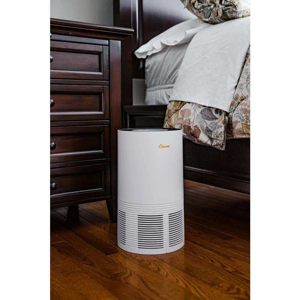 Get comfortable with the air quality in your home with Crane’s innovative premium tower UV air purifier. Crane’s purification system includes a pre-filter, true HEPA filter, and UV lamp. Equipped with a UV lamp, Crane’s premium tower air purifier removes bacteria and germs from the air. With speed settings, and 3 timer settings, you choose how you want to run the show. Crane’s premium tower air purifier provides up to 300 sq. ft. of coverage and will efficiently clean your indoor air by removing pollutants from your home, all the while contributing to your home’s decor.