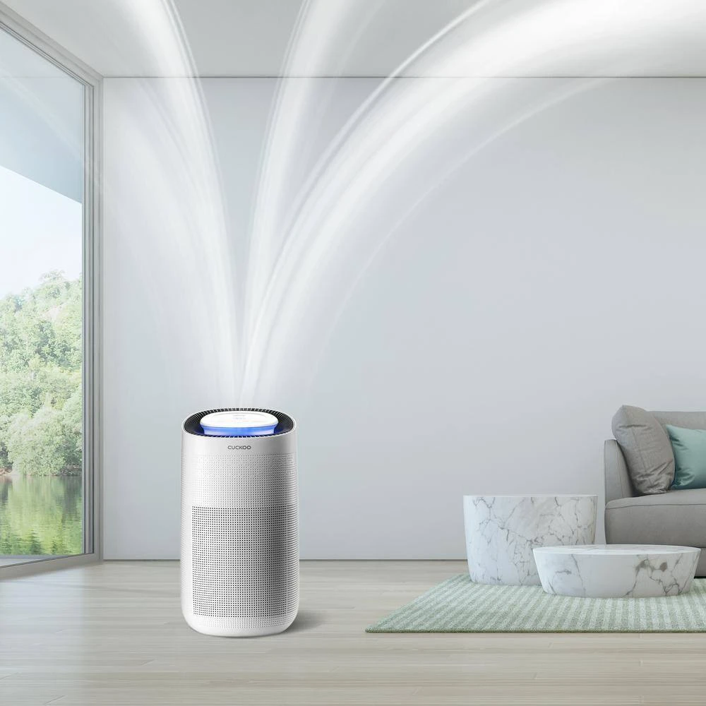 Cuckoo CAC-I0510FW Air Purifier 3-in-1 Filtration: Pre-Filter, True HEPA+ (H13), Carbon, 3 LED lite Air Quality Indicator, Eliminates Allergens, Smoke, Dust, Odor, and Dander. Our 3-in-1 Air Purifier has a Pre-Filter, True HEPA+ (H13) Filter (better than traditional True HEPA (H10-H12), and a Highly Efficient Activated Carbon Filter which collects allergens, pet hair, dander, smoke, odor, mold, dust and more. 7 COLOR AMBIENT LIGHTING. Our 3-in-1 Air Purifier comes with an Air Quality Sensor which indicates the quality of air around the air purifier with 3 different LED colors. In Auto mode, the sensors will increase fan speed when it detects poor air quality.
