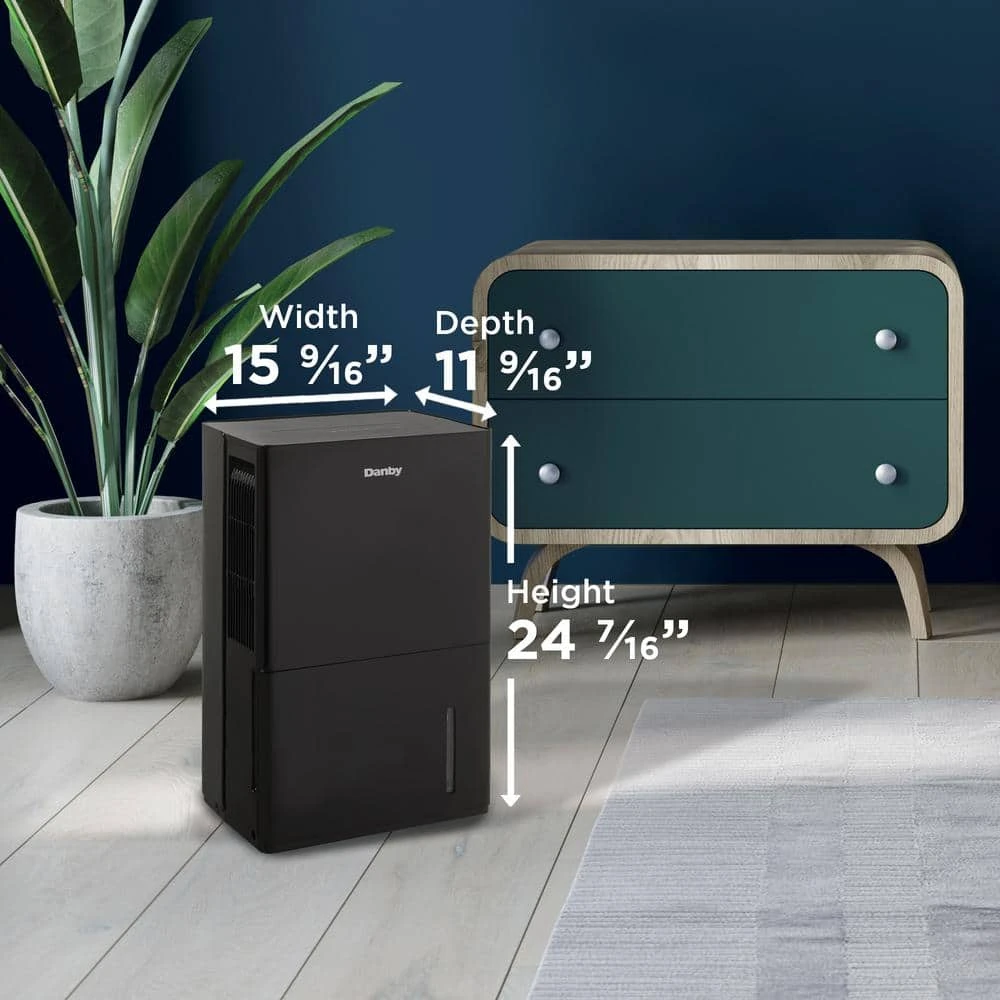 This Danby 50 pint dehumidifier helps protect your home from humidity by removing up to 23.6L of humidity per day. This is ideal for spaces up to 3,000 sq. ft., the Danby dehumidifier has an auto restart function that restarts your unit after a power failure, and an auto de-icer to prevent frost build-up. The 4 castors make moving from room-to-room very simple, and the Smart Dehumidify feature allows it to automatically control room humidity by factoring in ambient temperatures. The unit is Energy Star Certified, so it runs economically, even in very humid environments. This model also features easy to use electronic controls with LED display, a reusable/washable filter, and a powerful 2 speed fan!