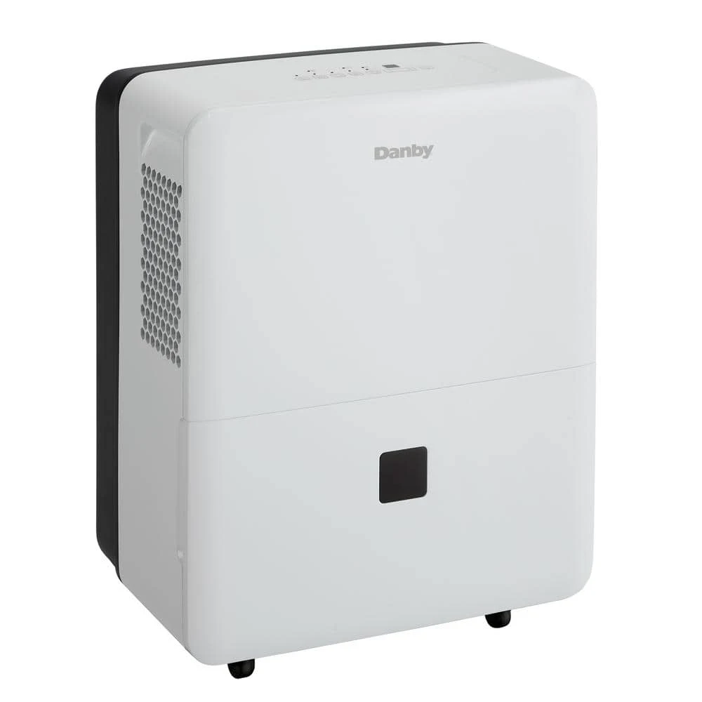 This Danby 50 pint dehumidifier helps protect your home from humidity by removing up to 23.6L of humidity per day. This is ideal for spaces up to 3,000 sq. ft., the Danby dehumidifier has an auto restart function that restarts your unit after a power failure, and an auto de-icer to prevent frost build-up. The 4 castors make moving from room-to-room very simple, and the Smart Dehumidify feature allows it to automatically control room humidity by factoring in ambient temperatures. The unit is Energy Star Certified, so it runs economically, even in very humid environments. This model also features easy to use electronic controls with LED display, a reusable/washable filter, and a powerful 2 speed fan!