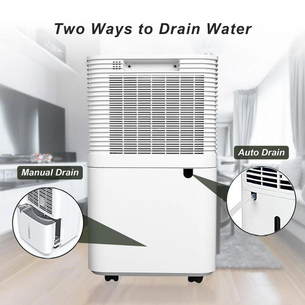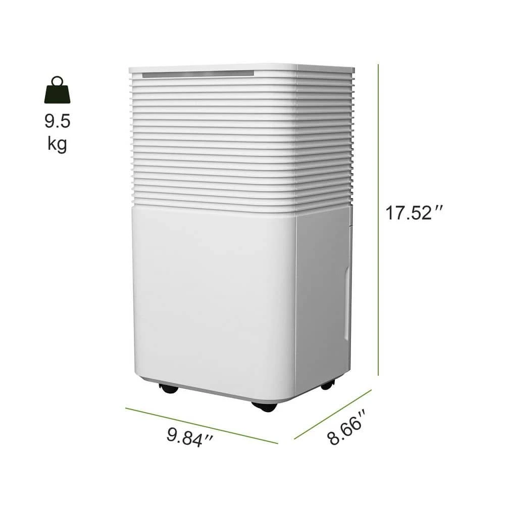 9.8 x 8.7 x 15.5 inches dehumidifier with drain hose for large rooms is perfect for use in basement, bathroom, bedroom, garage, or home. Dehumidification is supported by advanced inner hardwares: powerful and reduced energy consumption compressor enables a maximum removal of 25 pints moisture per day (under 86°F, 80%RH condition). Centrifugal engine and unobstructed air outlet enable rapid and smooth emission of air that covers up to 2000 Sq. Ft