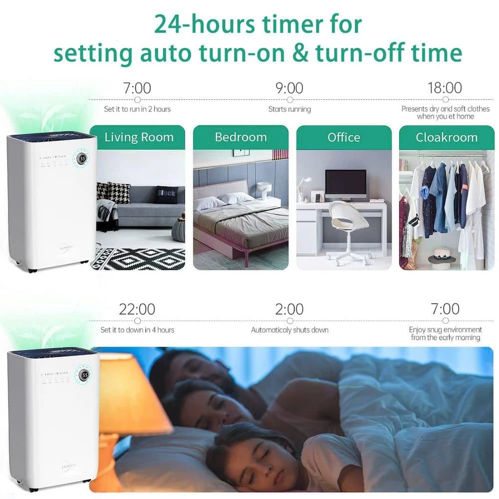 - 24-hours timer allows you to set auto turn-on and turn-off time