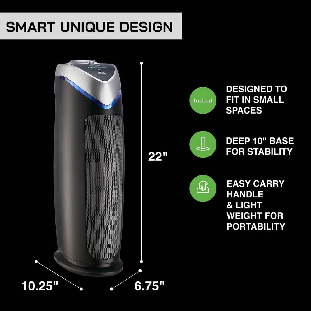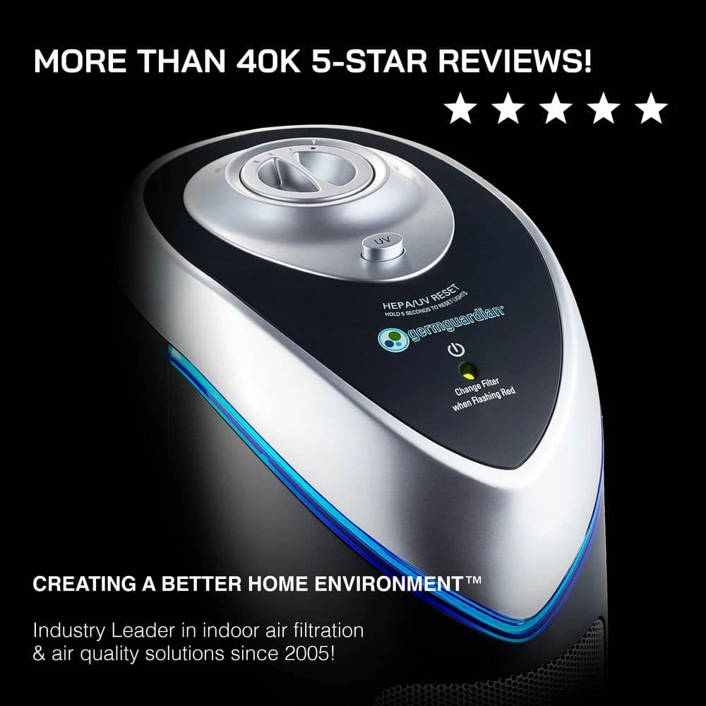 The 4-in-1 True HEPA Air Purifier is perfect for allergy sufferers. With a True HEPA filter, it captures 99.97% of dust and allergens as small as 0.3 microns in size. According to the American Academy of Pediatric Allergy and Immunology, doctors recommend HEPA air filtration to reduce exposure to indoor asthma triggers. More than just a filter, the UV-C light kills germs, while the charcoal filter captures odors. CADR Rated 100+ and standing 22 in. tall, it is lightweight and ideal to use in medium sized rooms. Includes a UV-C control and a filter change indicator. Choose from 3 speeds, including a low speed that runs ultra-quiet.