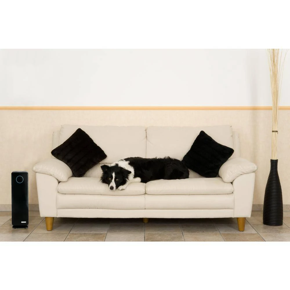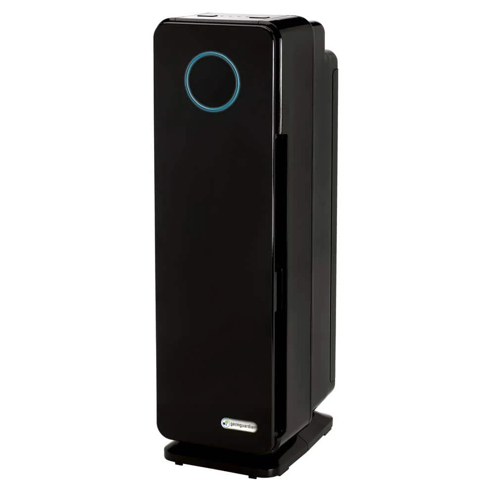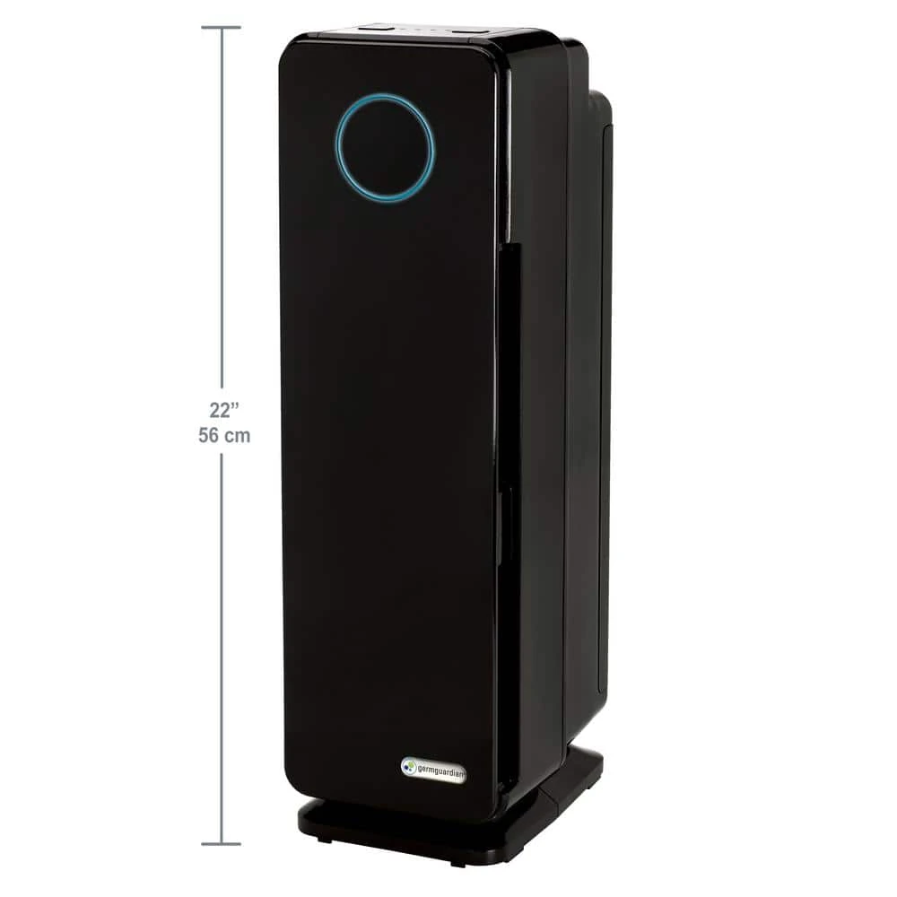 The 5-in-1 True HEPA Air Purifier is perfect for allergy sufferers. True HEPA captures 99.97% of allergens including pet dander, dust mites and pollen. The Pet Pure is an antimicrobial agent added to the filter to inhibit the growth of mold, mildew and odor-causing bacteria on the surface of the filter. According to the American Academy of Pediatric Allergy and Immunology, doctors recommend HEPA air filtration to reduce exposure to indoor asthma triggers. More than just a filter, the UV-C light kills germs, while the charcoal filter captures odors. CADR Rated 100+ and standing 22 in. tall, it is lightweight and ideal to use in small to medium sized rooms. The easy to use electronic controls include UV-C control and a filter change indicator. Choose from 3 speeds, including a low speed that runs ultra-quiet. The Elite Collection provides both form and function to provide a superior air cleaning system. The simple, stylish design looks great in any home environment.