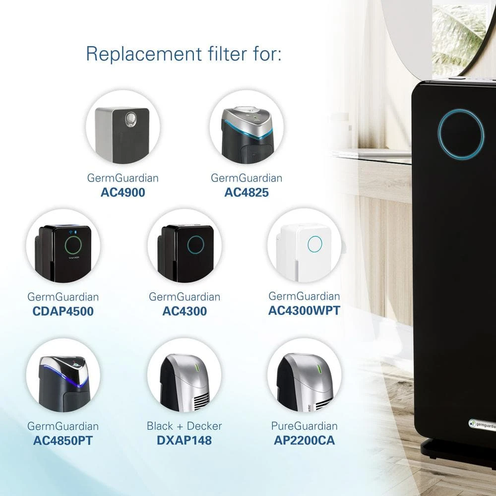 - Replacement filter for GermGuardian Air Purifier Models AC4900, AC4825, AC4850PT, PureGuardian Model AP2200CA and BLACK+DECKER BXAP148