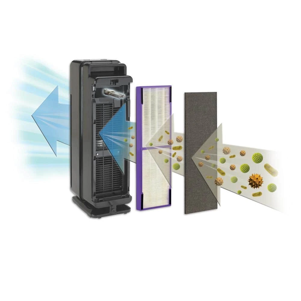- Multiple levels of cleaning include HEPA, Pre-Filter and a Charcoal layer to help improve indoor air quality
