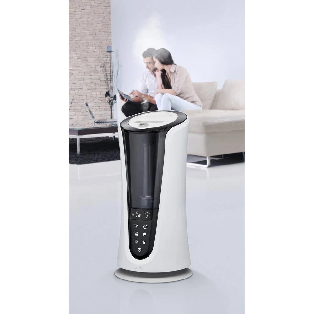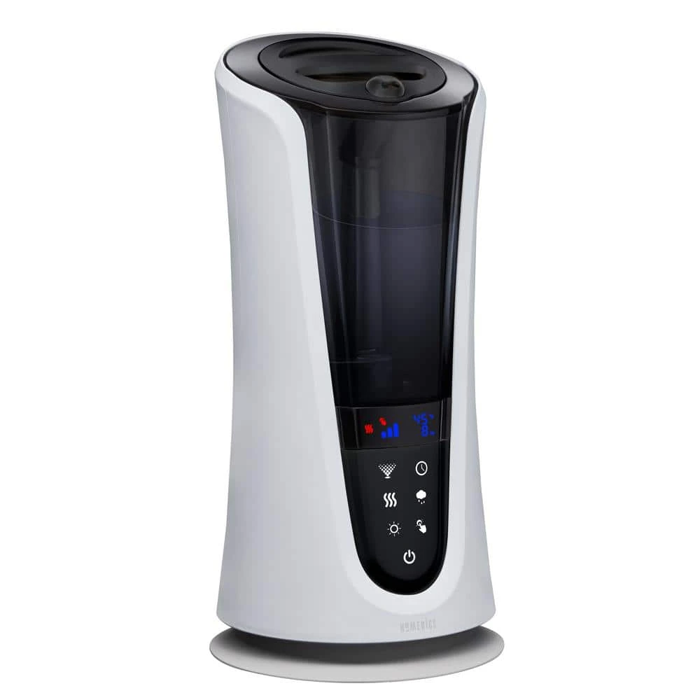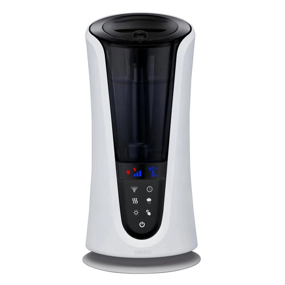 The HoMedics TotalComfort 85-hour Warm or Cool Mist Humidifier has 5 mist settings. It has a large water tank with handle for easy filling. This ultrasonic humidifier kills 99.99% bacteria in water while in warm mist setting. with a coverage area of up to 521 sq. ft. this is great for large bedrooms and family rooms.