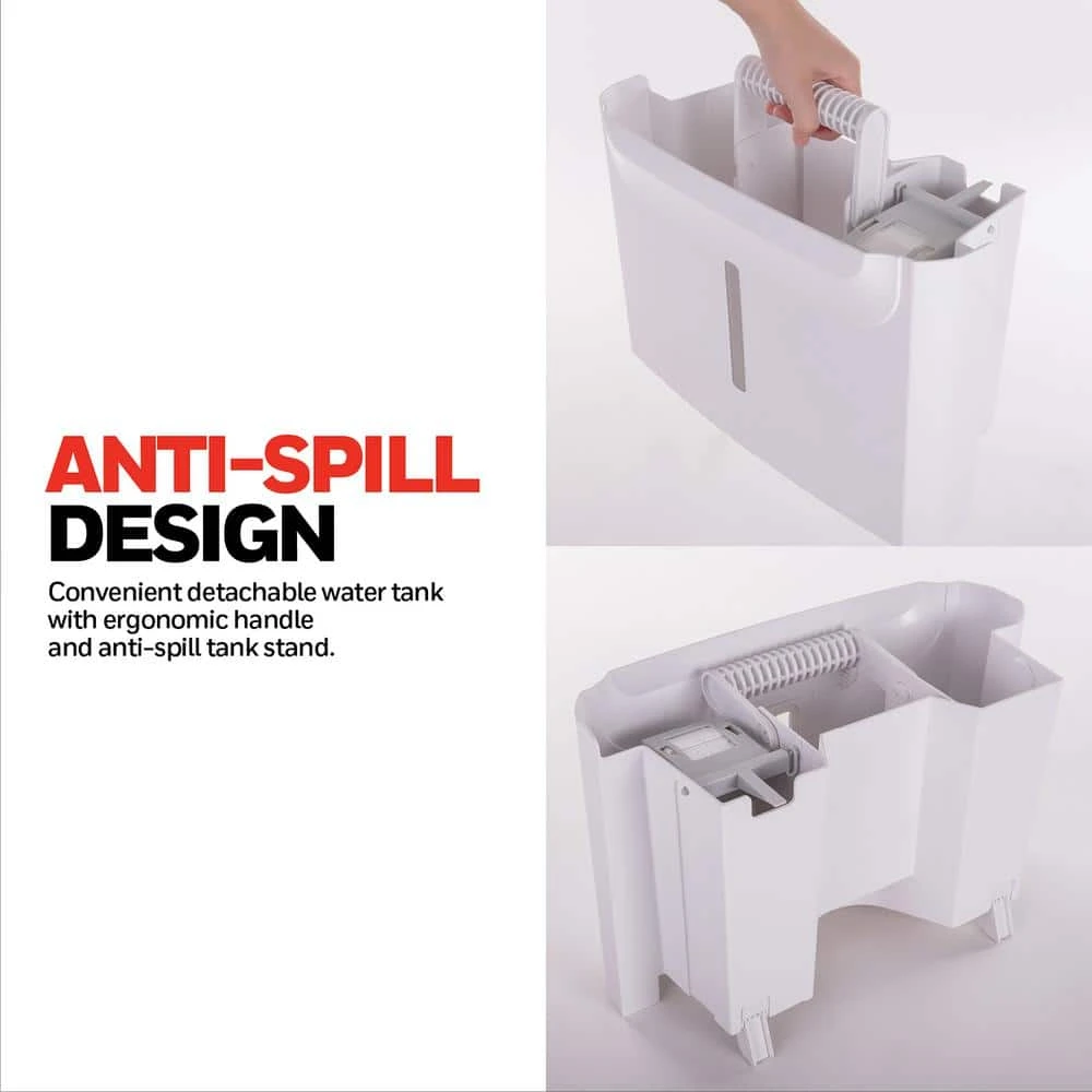 - Easy access washable air filter, detachable water tank with handle & anti-spill tank stand