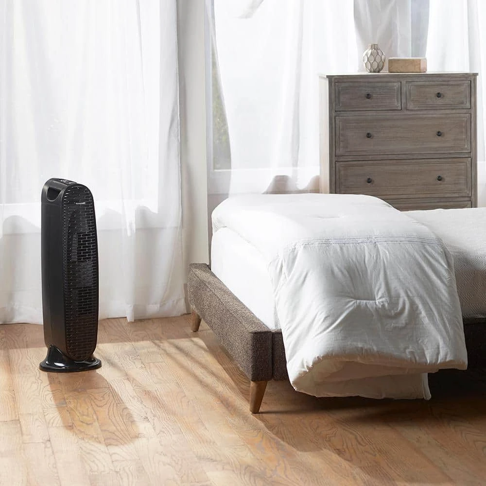 The Honeywell QuietClean Tower Air Purifier captures up to 99% of ultra fine particles such as smoke, dust, pollen, mold spores and pet hair and dander. It also traps odors and VOC’s. It comes with a Permanent Washable if D filter and an installed Washable Pre-Filter (which should be cleaned every 3 months). The permanent, washable filters offer lasting use and simple maintenance. It also includes another option for the Pre-Filter: an Odor Reducing Pre-Filter, which is not washable and needs to be replaced every 3 months. It’s quiet operation enables use while others are sleeping, watching TV or working. It circulates room air 5 times every hour and has electronic push button controls, along with a dimmer feature to simplify operation.