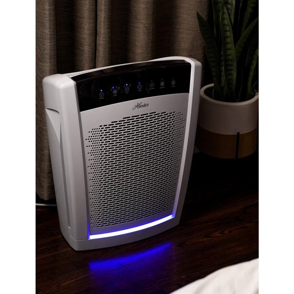 Clean the air in multiple rooms or your whole home with the Hunter HP850UV. This multi-room air purifier features UVC light technology and top-of-the-line filtration to ensure the air in your home is clean and fresh. Product dimensions: 20.71 in. x 12.04 in. x 25 in.