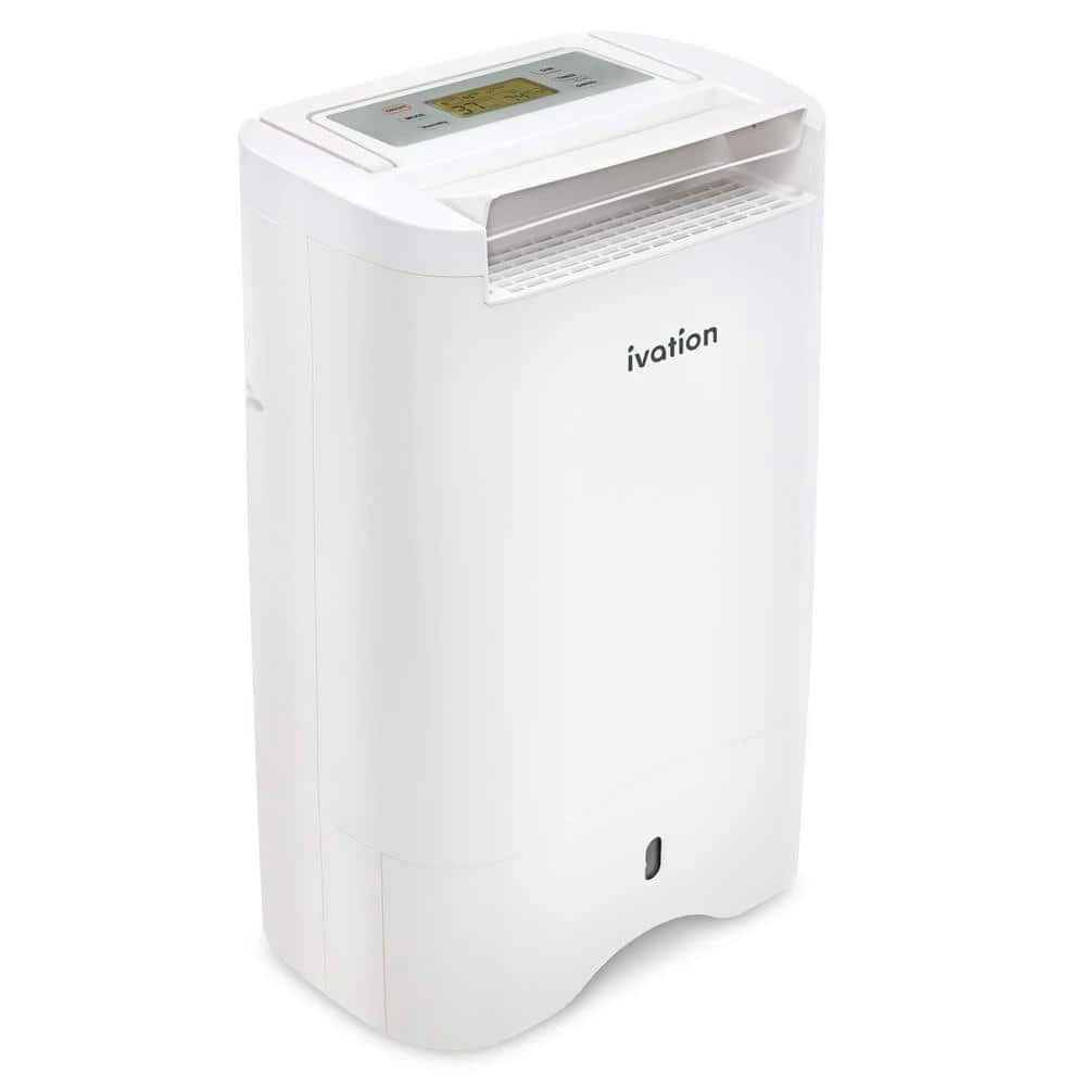 Breathe easy with this all-season air meister. Maintain a dry, comfortable environment-even in cold conditions-with this 19-Pint Desiccant Dehumidifier from Ivation. Unlike large compressors that are heavy, noisy and emit noxious gasses, our desiccant rotor technology retains its efficiency at low temperatures, delivering consistent moisture removal that’s quieter, faster and easier to carry around. Advanced features allow you to view and adjust humidity levels, set a timer, change fan speed and initiate sleep mode. You can even control the air outlet swing for targeted laundry-drying. Say goodbye to pesky mold, sticky humidity, nasty odors and other irritants, and say hello to brisk but breathable air quality. Winter, spring, summer and fall, the decision is easy-bring home an Ivation Desiccant Dehumidifier today. Multipurpose Performance: Due to its unique desiccant technology, our dehumidifier serves a variety of purposes in any space up to 410 sq. ft. Power the unit to extract moisture, eradicate mold and mildew, deodorize foul smells, regulate condensation, dry wet laundry, or dry out rugs and other items following flood damage. Revolutionary Desiccant Rotor: Designed to work wonders in basements, boats, RVs and other cold or semi-outdoor spaces, this new technology dehumidifies rooms as low as 33°F and as high as 104°F [1°C-40°C]. There’s no need for a loud, heavy compressor, so the expelled air is slightly warmer, making it perfect for drying clothes and more.