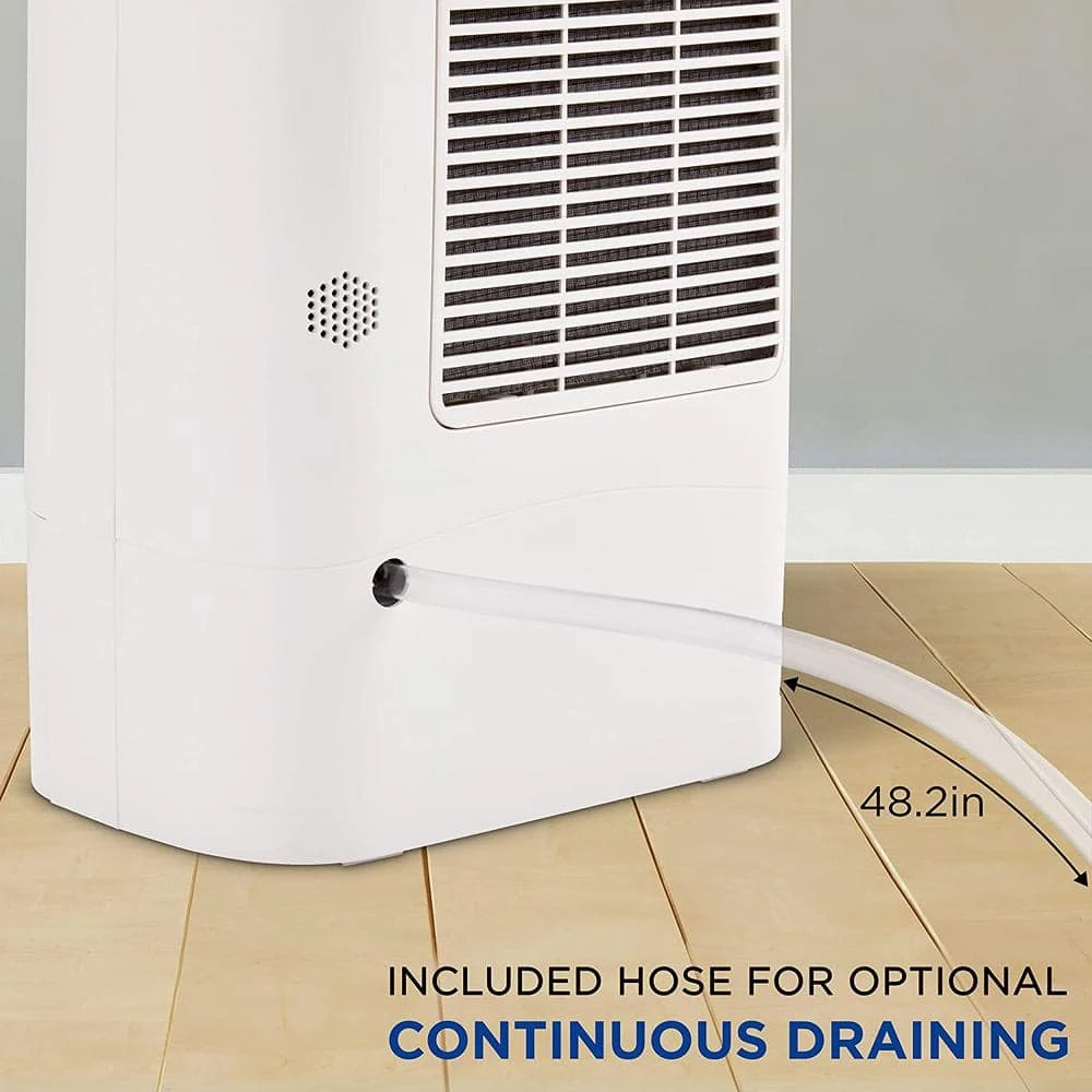 - Continuous drain Hose Hookup – Built in hose connection allows continuous draining in damp rooms