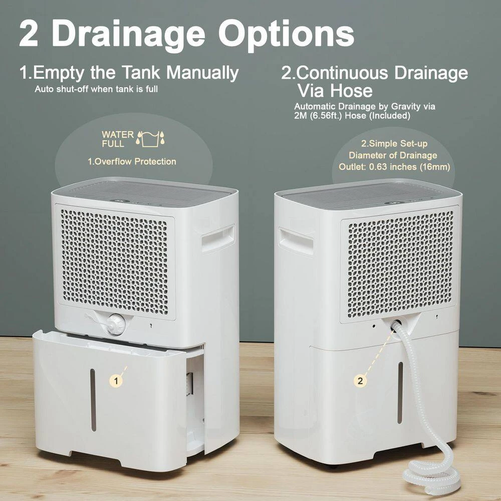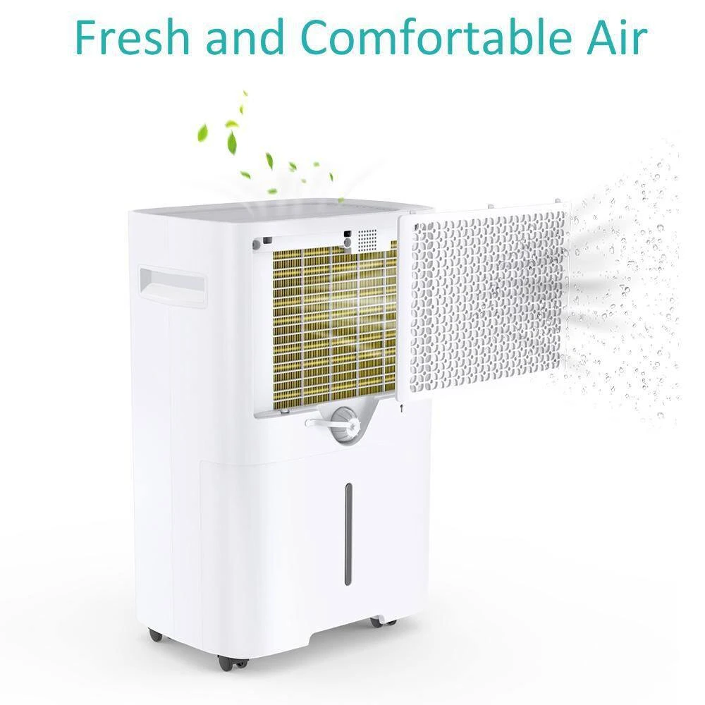 This 50-pint multifunction dehumidifier is equipped with a powerful compressor and 112 CFM system, making it capable of removing up to 50 pints of moisture from the air quickly and quietly (at 95°F, 90% RH) every day. Versatile configuration that intelligently serves your living environment better and enhances your quality of life. Automatic temperature control adjusts humidity between 30%RH-85%RH to maintain preset temperature levels Perfect dehumidifier for bathrooms, homes, offices, basements, bedrooms, kitchens, storage rooms, living rooms, laundry rooms, dormitories, apartments and crawl spaces up to 3,500 sq. ft.