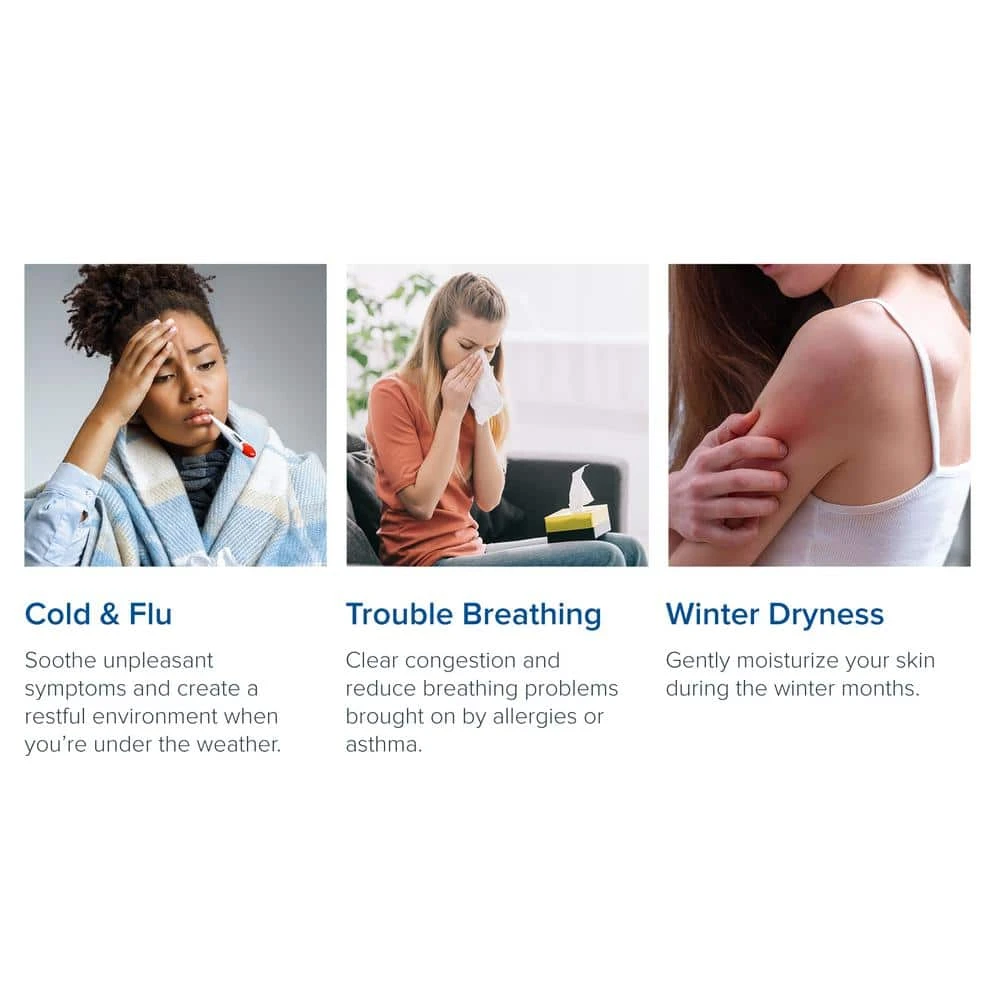 - Aromatherapy: simply add 2 to 3 drops of essential oils to the aroma pad to turn your humidifier into a diffuser