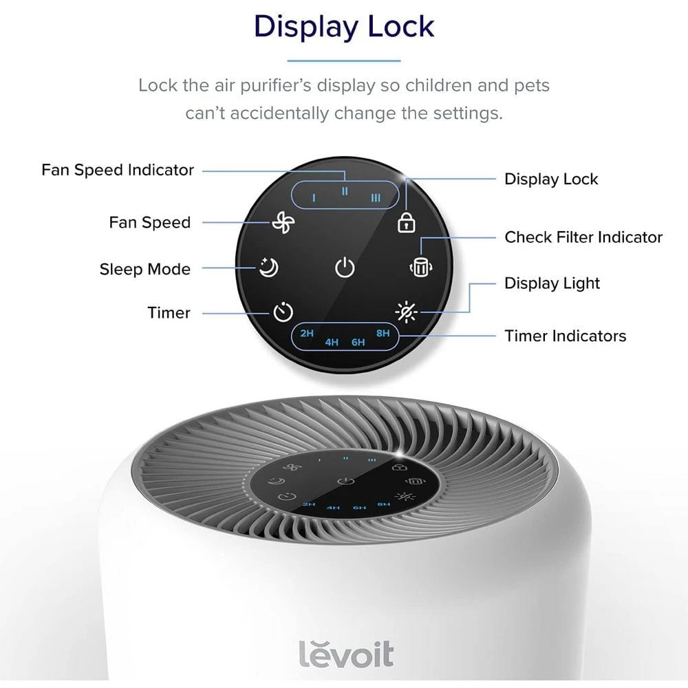 Keep airborne contaminants out of your home with the LEVOIT VortexAir True HEPA Air Purifier. The Pre-Filter captures large particles like pet fur and hair. The H13 True HEPA Filter captures allergens like pet dander and pollen. The High-Efficiency Activated Carbon Filter’s ARC Formula adsorbs odors and chemically decomposes them to prevent second-hand pollution. The air purifier refreshes air up to 5 times per hour in rooms as large as 220 sq. ft. or 20 sq. m with VortexAir Technology’s spiral airflow. The durable internal structure offers an increased lifespan, and the convenient Check Filter Indicator reminds you when it might be time for a new filter.