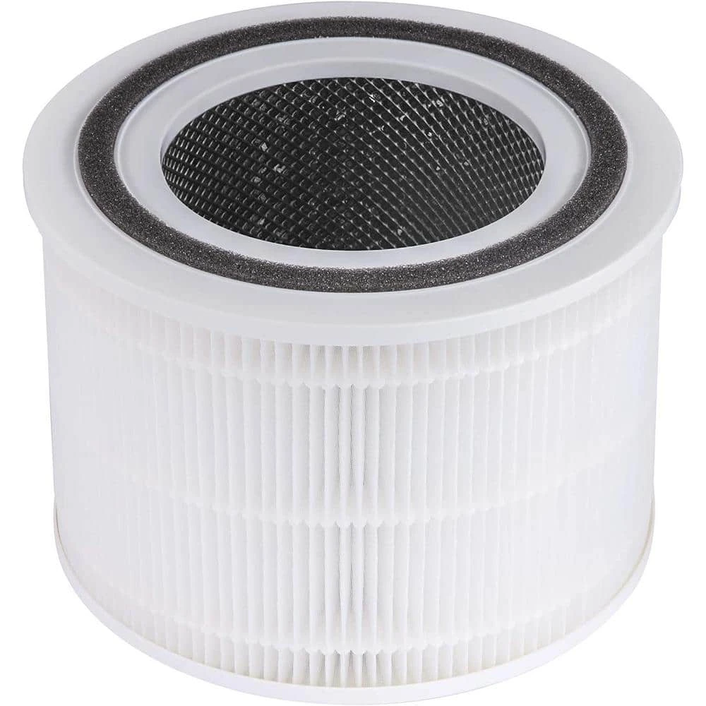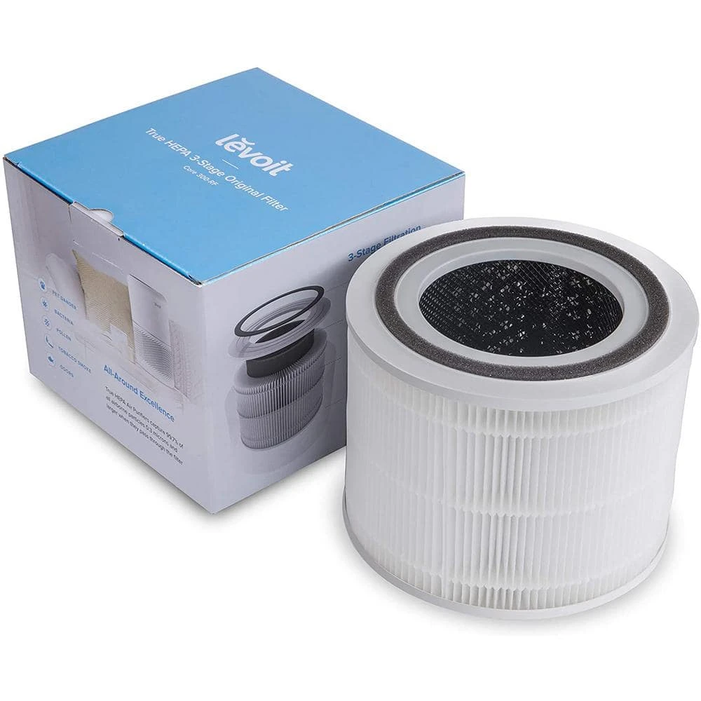 Replacement filter for LEVOIT VortexAir True HEPA Air Purifier. Fine preliminary filter – Captures large particles such as pet fur, pet dander, lint, fibers and hair. True HEPA Filter – Filters small particles such as dust, mold spores, and allergens such as pollen, pet dander and mites. Activated Carbon Filter – Adsorbs unwanted odors and fumes such as pet odors, cooking smells smoke, ammonia and VOCs.