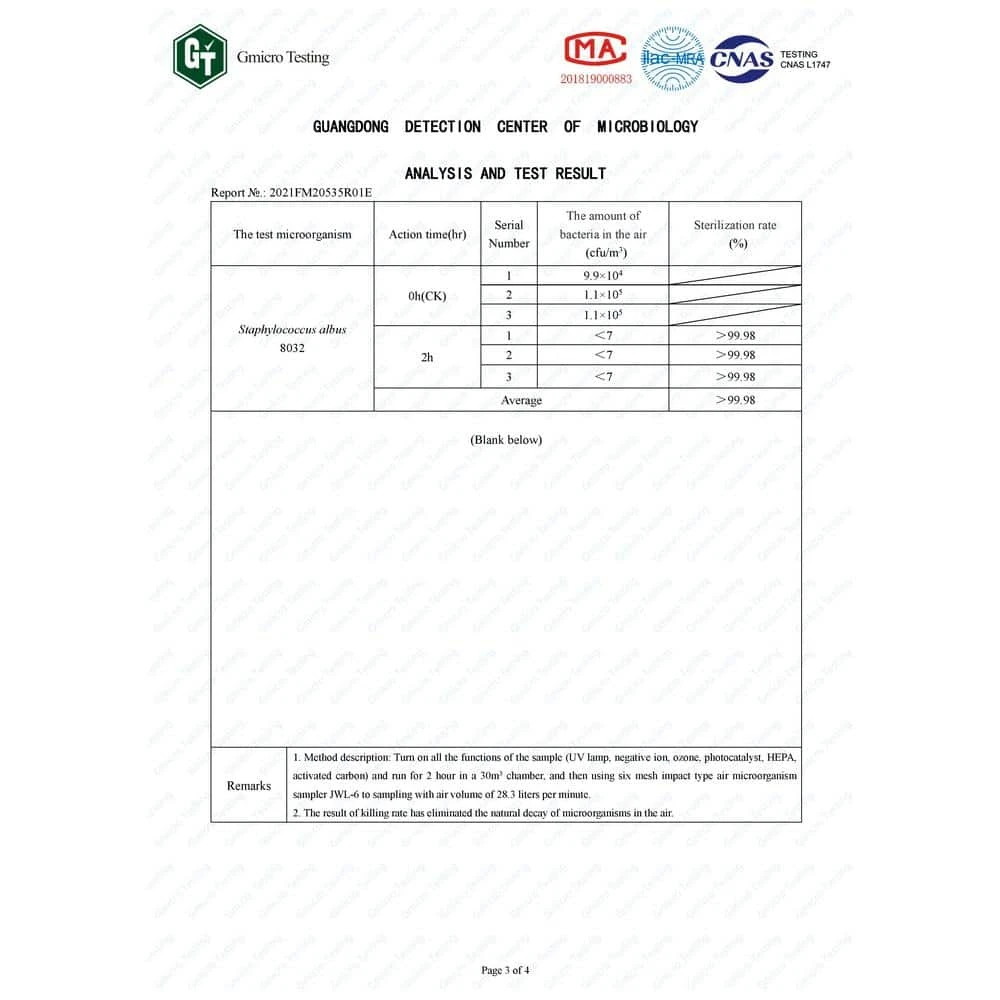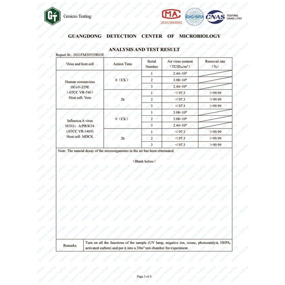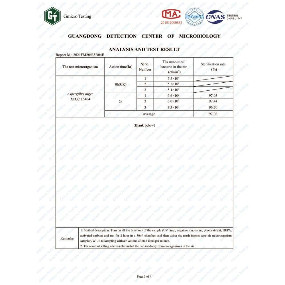 - This model of New Comfort Air Purifier demonstrated, through independent laboratory testing, to be effective at removing 99.99% of Viruses, 99.98% of Symbiont Bacteria, and 97.03% of Black Mold Spores in the air. Test results showed reduction of 99.99% of airborne Human CoronaVirus 229E, 99.99% of airborne Influenza A H1N1 Virus, 97.03% of airborne Aspergillus Niger (Black Mold), and 99.98% of airborne Staphylococcus Albus (bacteria). This independent test was performed in a 1,059 cubic feet lab test chamber for 2 hours. SEE DESCRIPTION FOR ACTUAL TEST RESULTS!