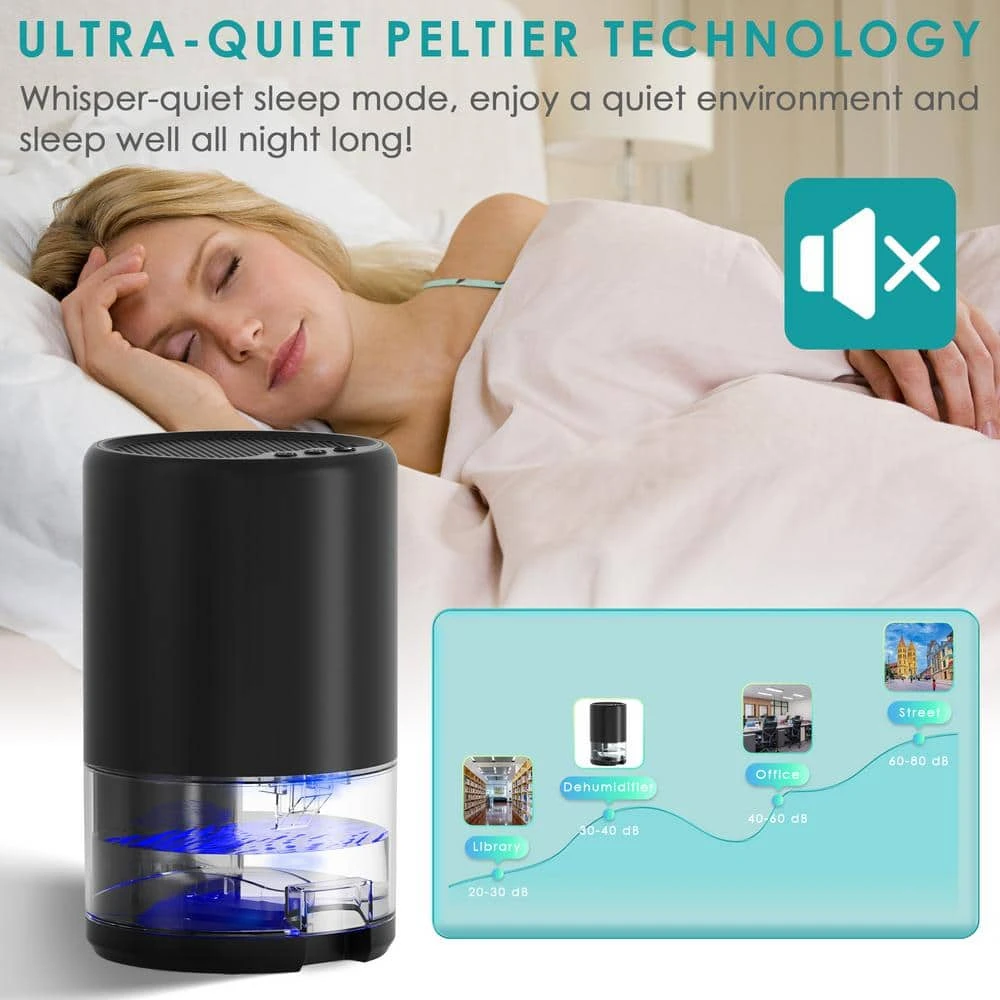 - High efficient dehumidification adopts thermoelectric Peltier technology, this dehumidifier with 35 oz. transparent water tank can extract up to 16 oz. of water per day under the environment of 86°F and 80% RH, perfect for bathroom and basement use