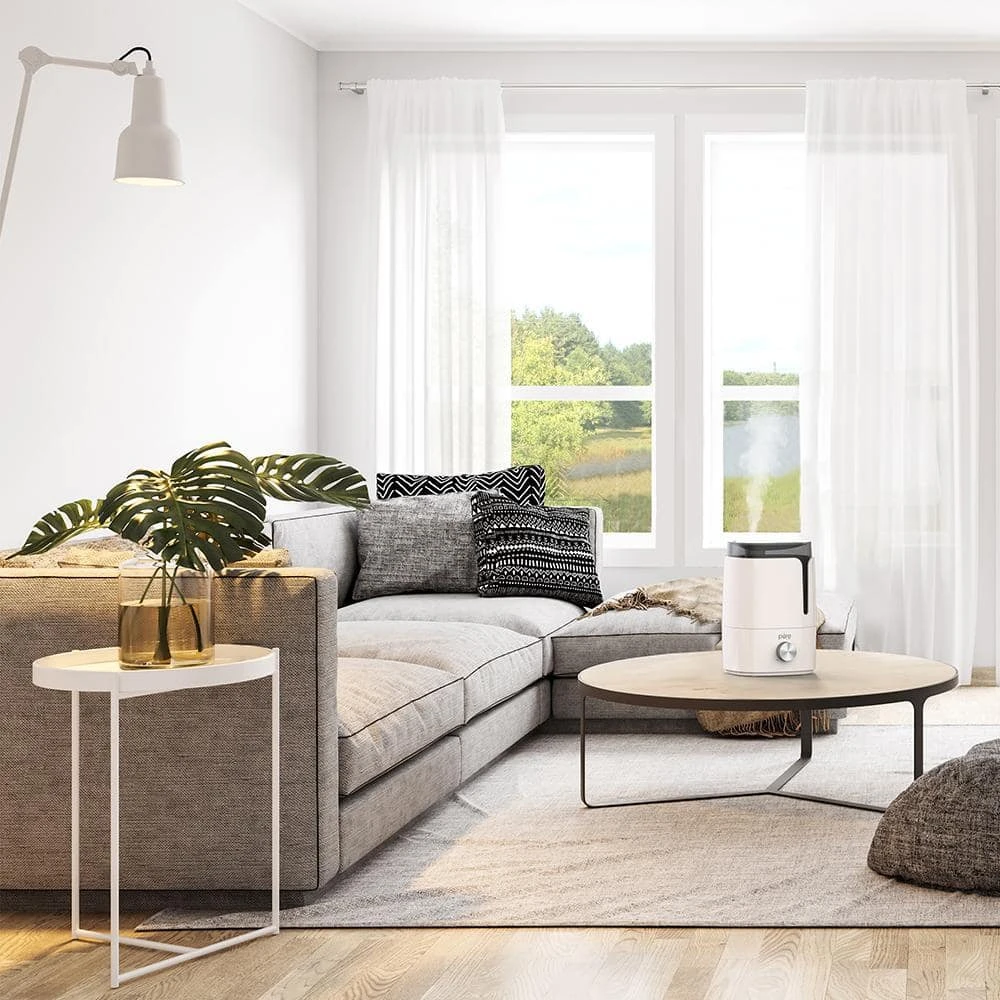 Make every room in your home more comfortable with the moisturizing benefits of the Hume Ultrasonic Cool Mist Humidifier from Pure Enrichment. When used all day, this powerful and aesthetically pleasing humidifier emits more than 1.5 Gal. of moisture into the air to help provide relief for common symptoms associated with dry airlike sinus congestion and itchy, dry skin. The large water tank opening makes it easy to hand wash the inside of the tank to remove buildup and keep the humidifier operating at maximum efficiency-no special brushes or tools needed.