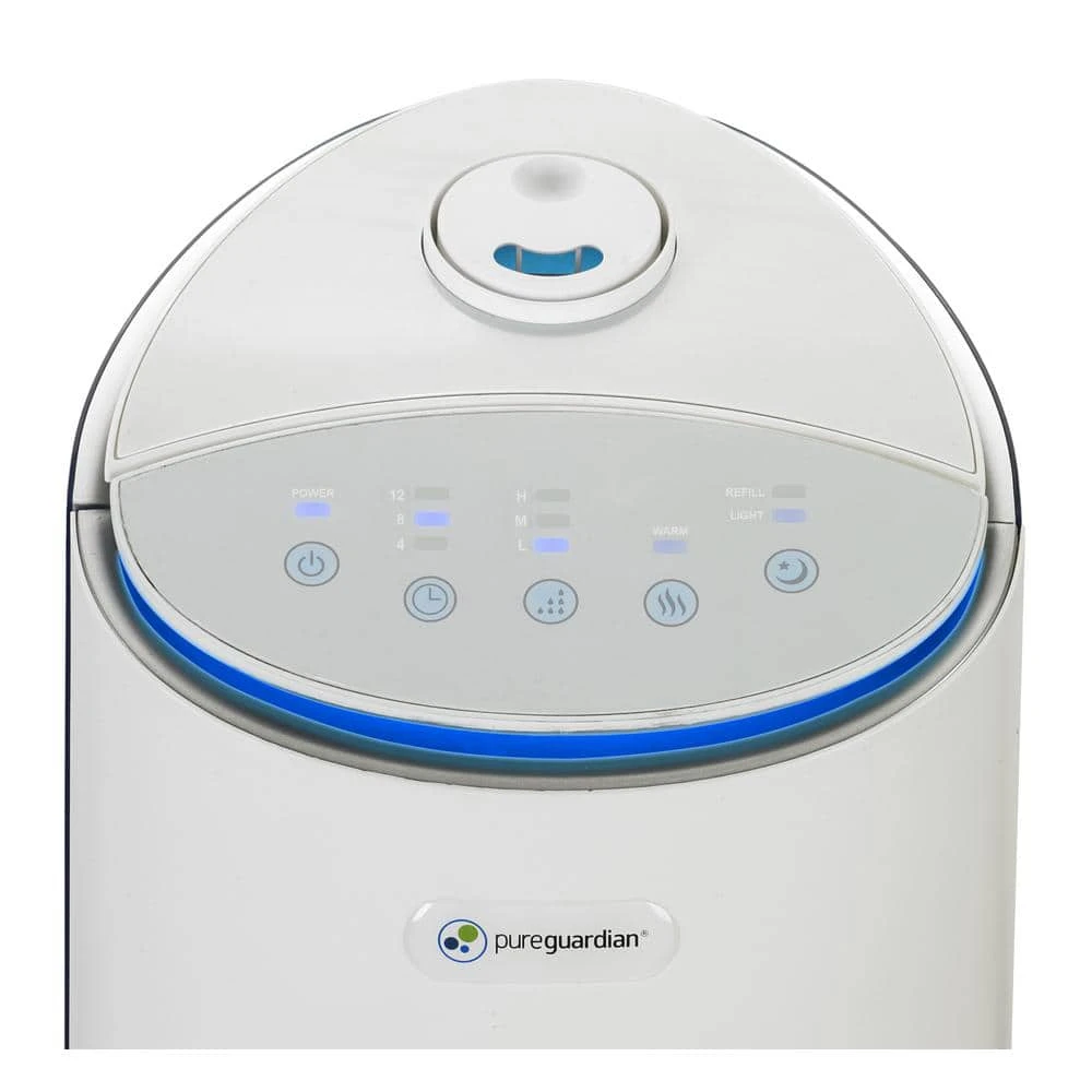 The 100-hour PureGuardian Ultrasonic Cool and Warm Mist Humidifier Tower enhances comfort, helping you sleep better. It provides quick relief from dry air making life pleasant for those with colds, allergies and dry skin. The space-saving tower design, with an easy-to-fill large 1.5 Gal. tank, is ideal for use in medium size rooms. Unlike humidifiers that grow slimy mold on the water tank surface, Silver Clean Protection is embedded in the tank to fight the growth of mold and mildew on the surface of the water tank. Thanks to ultrasonic technology, it disperses a fine mist into the air and is ultra-quiet making it ideal to have on while you sleep. This tower humidifier has an optional aroma tray so a few drops of essential oil can be added to create a relaxing atmosphere. The humidifiers equipped with a 12-hour timer, a night light and variable mist control. An indicator light lets you know when it’s time to refill the water tank. The humidifier shuts off automatically once empty. Note: Run time is based off of running the unit on low speed, also depends on atmospheric conditions. PureGuardian aromatherapy oils are not included and must be purchased separately. Do not add oils to the humidifier tank as they can damage the humidifier and void the warranty. Only add essential oils to the pad that is included with the unit. Additional essential oil pads are available separately.