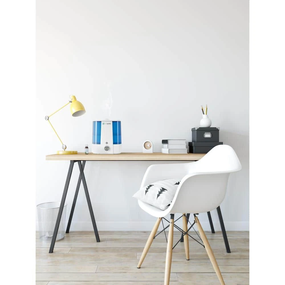 - Ultrasonic technology quietly disperses a fine cool mist providing relief from the dry air
