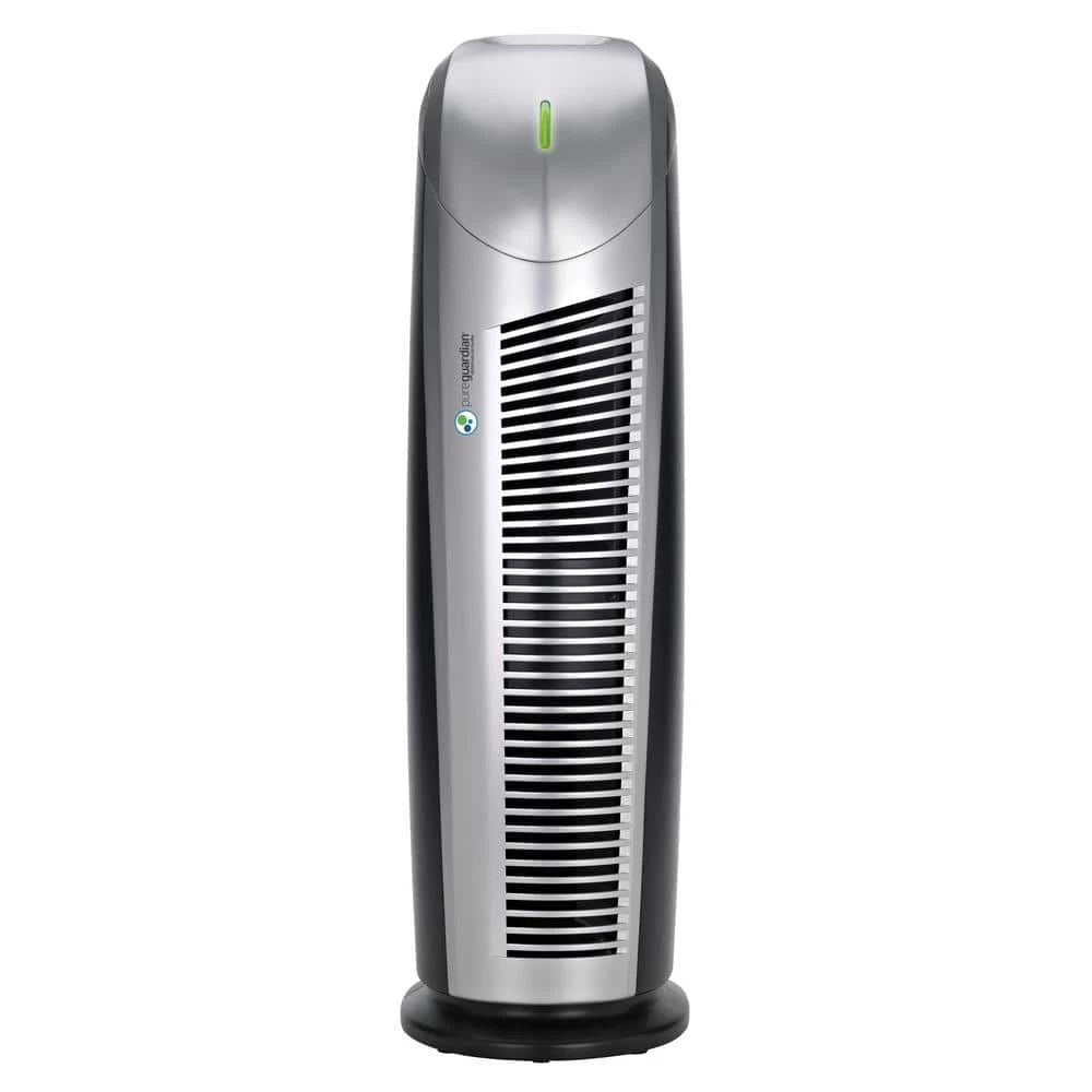 The PureGuardian HEPAFresh Air Cleaner tower is designed to help improve the quality of air in your home by reducing allergens and odors. The multi-layer filter captures up to 99% of airborne particles, such as dust mites, pollens, mold spores and pet dander; while the carbon layer reduces common smoke, cooking and pet odors. It is designed with a pre-layer to capture large dust particles, extending the life of the filter. The 22 in. tower is effective for filtering the air in medium sized rooms and offers 3 fan speeds depending on your needs. Uses Black+Decker HEPAFresh replacement filter # BXFLTY or GermGuardian HEPA replacement filter # FLT4825.