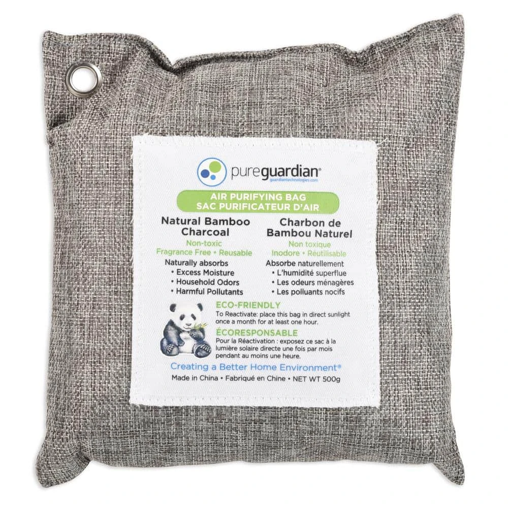 PureGuardian Bamboo Charcoal bags are a natural way to continuously absorb and reduce odors, excess moisture and harmful pollutants in your home or space. Unlike other popular odor eliminators that solely mask the smell of odors by releasing a fragrance, the chemical-free and non-toxic bamboo odor bags are fragrance free. Each bag can be reused for up to 2-years. To recharge, simply place the bag in direct sunlight once a month for at least 1-hour, to release any odors and trapped toxins inside of the bags pores. After an hour, your bag will work as good as new. The 500 g Bamboo Charcoal Air Purifying bag is perfect for bathrooms, laundry rooms, campers, cabins, boats and more. The bags are perfect for pet owners who want to eliminate unwanted pet odors without any maintenance. They can be placed next to litter boxes, cages and crates to deodorize the smell of your pets. The bags compact design allows them to be easily portable for travel and small spaces.