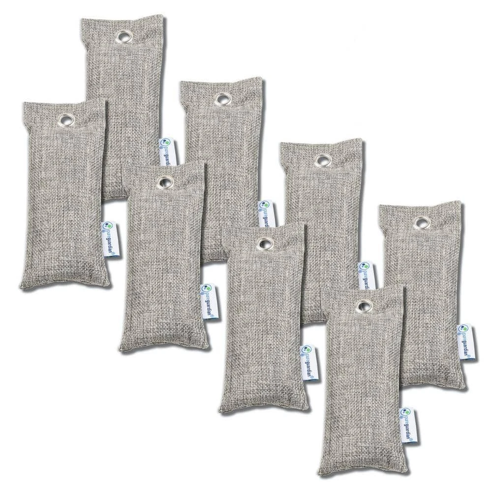 PureGuardian Bamboo Charcoal bags are a natural way to continuously absorb and reduce odors, excess moisture and harmful pollutants in your home or space. Unlike other popular odor eliminators that solely mask the smell of odors by releasing a fragrance, the chemical-free and non-toxic bamboo odor bags are fragrance free. Each bag can be reused for up to 2-years. To recharge, simply place the bag in direct sunlight once a month for at least 1-hour, to release any odors and trapped toxins inside of the bags pores. After an hour, your bag will work as good as new. The 8-pack of 75 g Bamboo Charcoal Air Purifying bags are the perfect size for shoes, hockey skates, rollerblades, ski boots and more. This compact size also allows for uses in other small areas such as backpacks, diaper bags. The bags are perfect for pet owners who want to eliminate unwanted pet odors without any maintenance. They can be placed next to litter boxes, cages and crates to deodorize the smell of your pets. The bags compact design allows them to be easily portable for travel and small spaces.