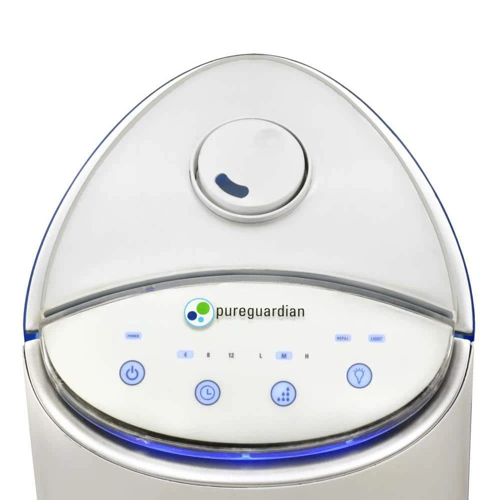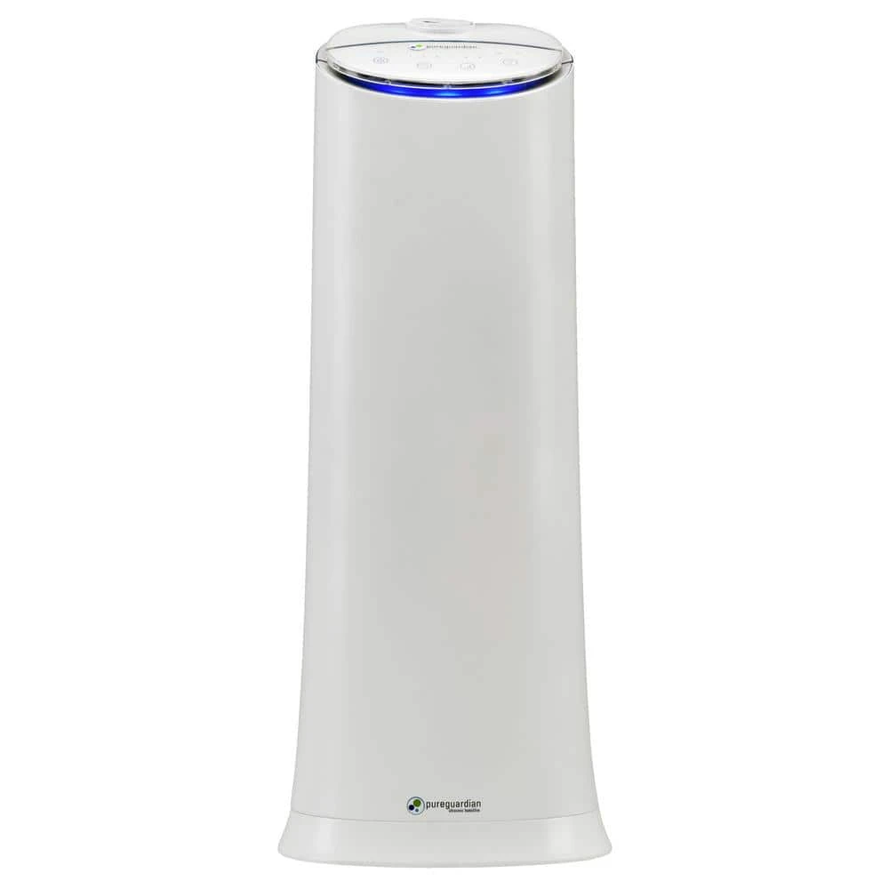 The 100-hour* PureGuardian Ultrasonic Cool Mist Humidifier Tower enhances comfort, helping you sleep better. It provides quick relief from dry air making life pleasant for those with colds, allergies and dry skin. The space-saving tower design, with an easy-to-fill large 1.5 gallon tank, is ideal for use in medium size rooms. Unlike other humidifiers that grow slimy mold on the water tank surface, Silver Clean Protection is embedded in the tank to fight the growth of mold and mildew on the surface of the water tank. Thanks to ultrasonic technology, it disperses a fine mist into the air, and is ultra-quiet making it ideal to have on while you sleep. This tower humidifier has an optional aromatherapy tray so a few drops of essential oil can be added to create a relaxing atmosphere. The humidifier is equipped with a 12-hour timer, a night light and variable mist control. An indicator light lets you know when it’s time to refill the water tank. The humidifier shuts off automatically once empty. Note: Run time is based off of running the unit on low speed, also depends on atmospheric conditions.
