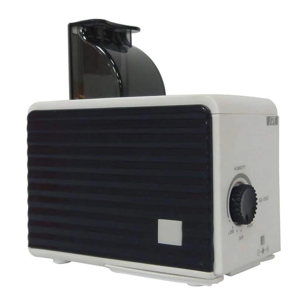 SPT personal humidifier is compact and light weight, this personal humidifier offers portability that is perfect for travel use. Small enough to easily fit in your luggage or carry on. Three different sized bottle adapters and a 100 up to 240-Volt AC adapter allows universal usage. All you need to obtain at destination is a bottle of water. Also ideal for use at work, in nursery or for anyone who desires its convenience and portability. Ultrasonic technology offers cool mist and quiet operation.