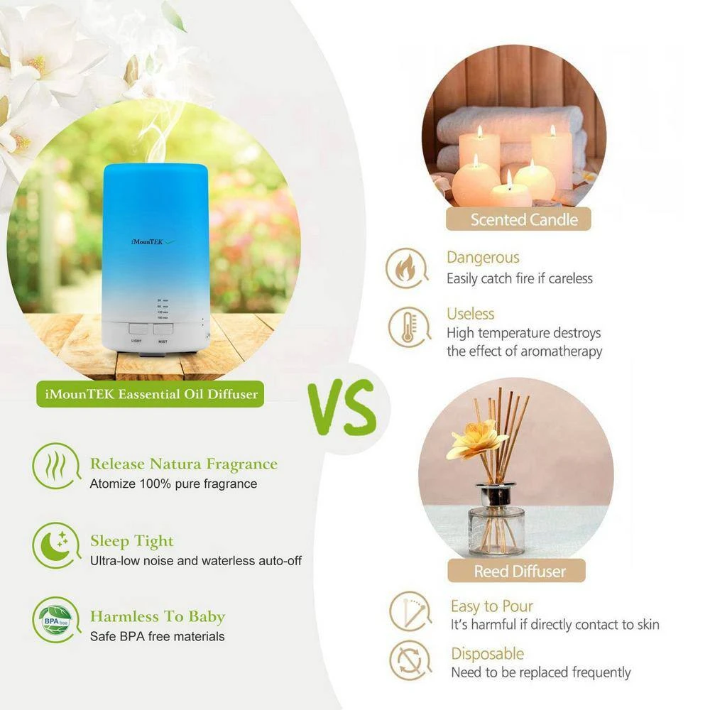 - Aromatherapy diffuser and humidifier: adding several drops of essential oil into the water, it will fill your space with lovely fragrance, some special oils can create therapeutic benefits, you can also use it as a humidifier without oils to add more moisture to the air-conditioner room