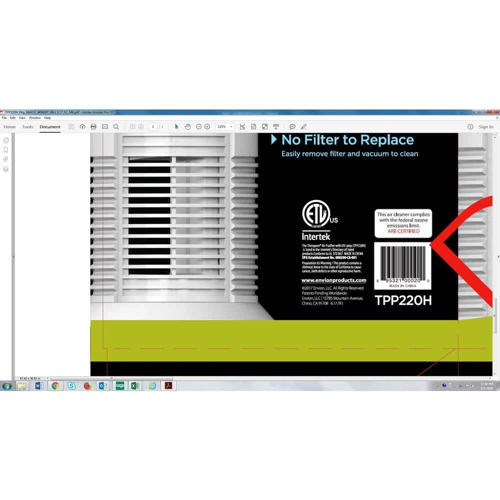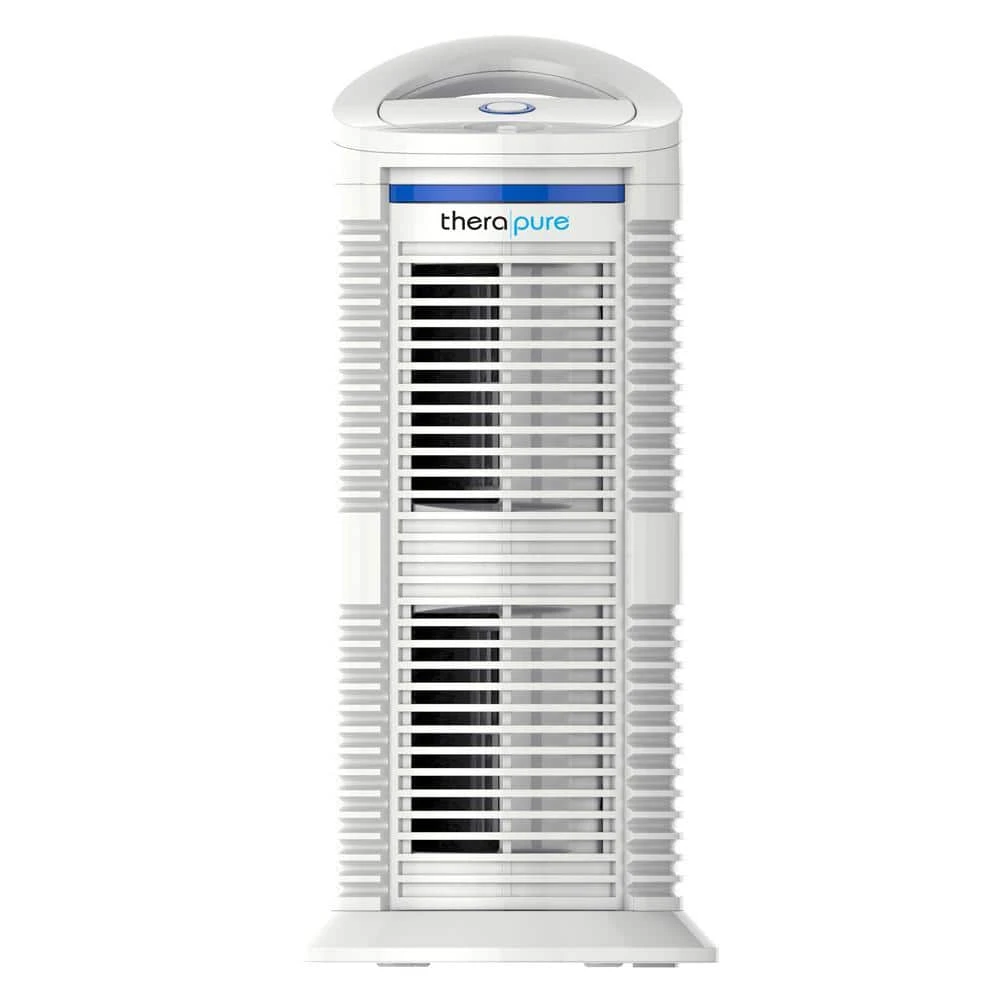 Tabletop Air Purifier with UV. Triple action air purification. A uniquely engineered permanent HEPA-type filter takes out particles in the air. A UV germicidal light kills germs and bacteria and a photo catalyst filter takes out the VOCs (volatile organic compounds), which are found in paint and carpet fumes. Therapure air purifier removes allergens and pollutants including dust mites, pollen, cigarette smoke, mold spores, odors, per hair and dander for more comfortable and healthy living.