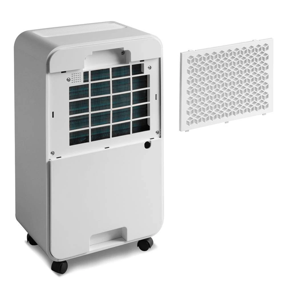 This dehumidifier is designed with convenience and style in mind: sleek and concise look, 19.6 in. x 11 in. x 7.8 in. compact footprint, equipped with convenient handle and caster wheels to help you move from room to room. A working noise level below 36 dBA is particularly quieter than a quiet library and 95% dehumidifiers on market, so it won’t disturb you when you sleep or at work. Easy-to-use 1-button design enables you to turn on/off the unit, switch between the 3 modes available: Auto Mode, Dry Clothes Mode, and Sleep Mode in just one touch. The intelligent screen displays the real-time humidity levels in different colors: turns red when it reaches above 60%, green when it’s between 40% and 60%, and blue when it’s under 40%. The dehumidifier is rated to remove up to 30 pints of moisture a day and is ideal for medium to large spaces up to 3000 sq. ft. This is the dehumidifier that you could use for any basements, office, home, bathroom, bedroom, kitchen, stockroom, living room, laundry room, cellars, crawlspace, etc.