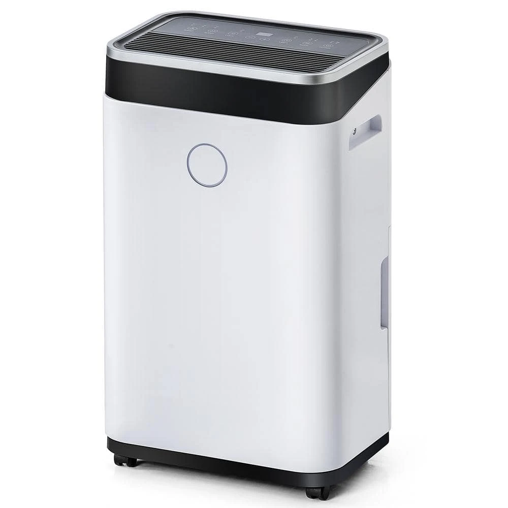 The 50 pints dehumidifier is equipped with a powerful compressor can quickly and quietly remove to 50 pints(under 86°F, 80% RH condition) of moisture from the air per day, making it fit for medium to large rooms in areas up to 4800Sq.ft. Designed with an adjustable humidity range between 30-80% and intelligent humidity control system,you can adjust to ideal indoor humidity for maximum comfort easily.It is perfect for any crawlspace, basement, office, living room,cellar, laundry room and stockroom,etc.The dehumidifier has fashionable look. With caster wheels and side handles,the dehumidifier moves around easily , dehumidifying your room when and where you need it.