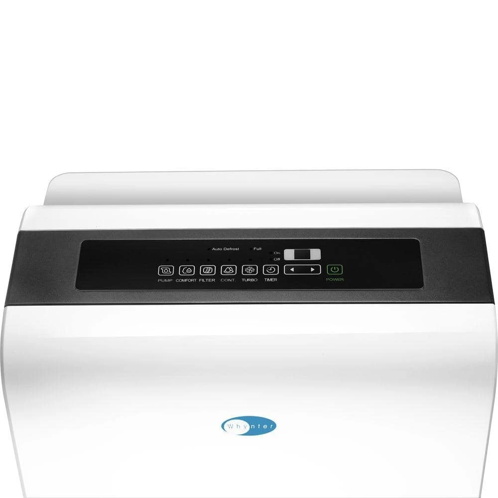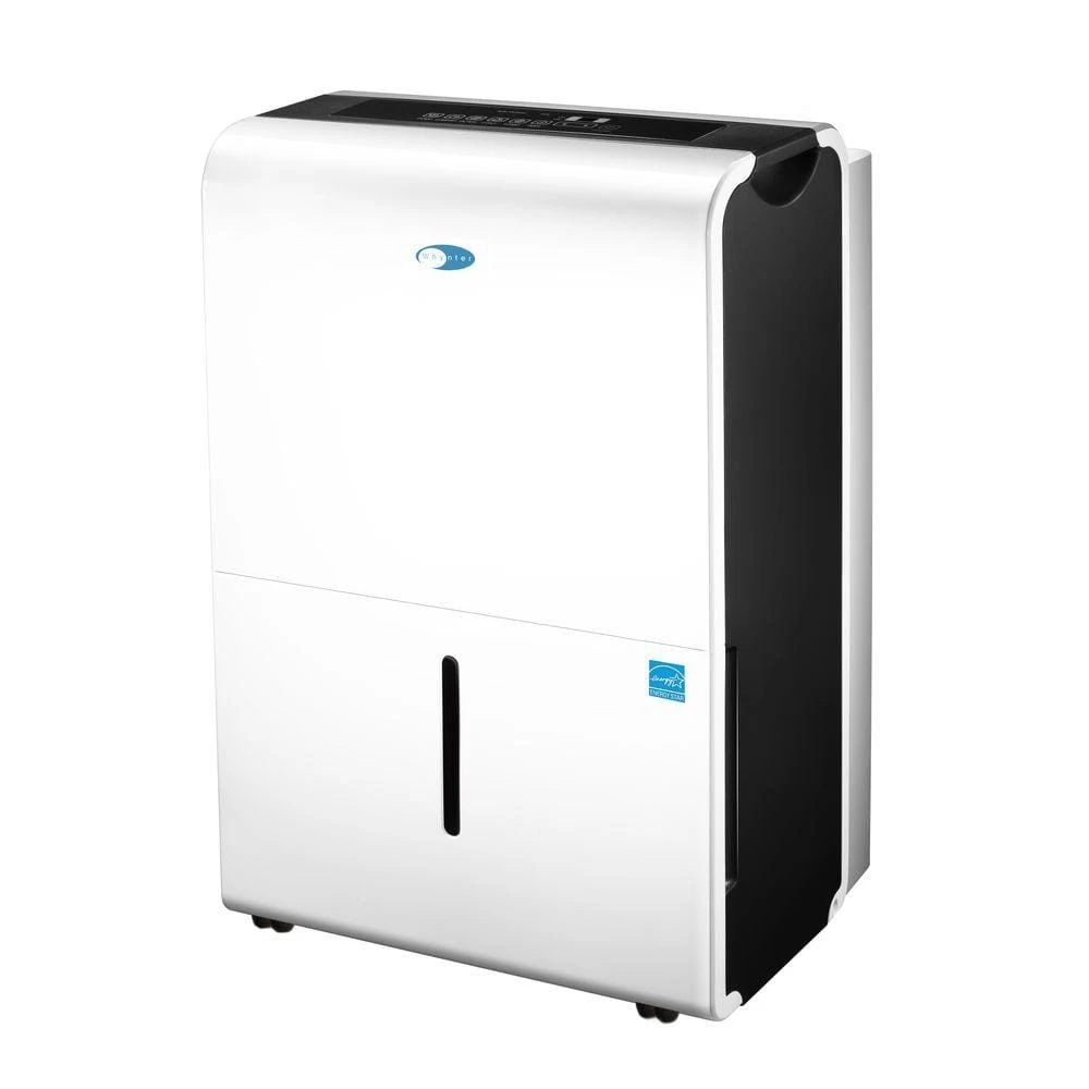 The stylish and powerful Whynter RPD-506EWP ENERGY STAR 50-pint Portable Dehumidifier with Built-in Pump is a high capacity unit with an impressive capability of removing up to 50-pint of moisture from the air per day. ENERGY STAR Rated. This unit is recognized as ENERGY STAR Most Efficient 2020, demonstrating specifications for lower energy consumption during use. This is especially important if you plan on operating the unit on a frequent basis. Drainage options. This portable dehumidifier can be continuously operated with 3 drainage options; manual drain, gravity drain and condensate pump drain. This portable dehumidifier includes a 13-pint bucket that can be removed and emptied. The condensate pump can pump out (and up) condensation water through the included 16.5 ft. drain for continuous water removal with approximately 15 ft. of vertical lift. A bonus drain hose attachment is included with the unit for your immediate convenience. The Whynter RPD-506EWP provides cost-effective and energy-efficient operation, without sacrificing design and performance. Designed for space constrained usage, this unit is suited for enclosed areas up to 4000 sq. ft.